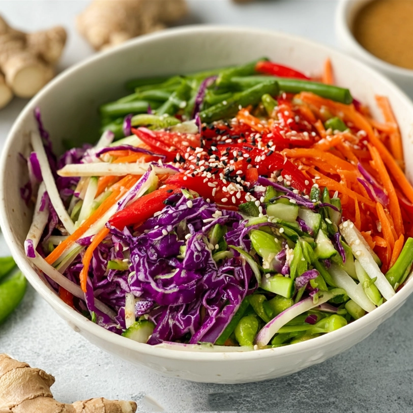 For deeper flavor, chill the vegetables briefly before assembling. Toast sesame seeds lightly for extra aroma. If you enjoy texture contrast, add crunchy noodles right before serving. A pinch of ginger or garlic in the dressing can also boost savory notes without overpowering the salad.