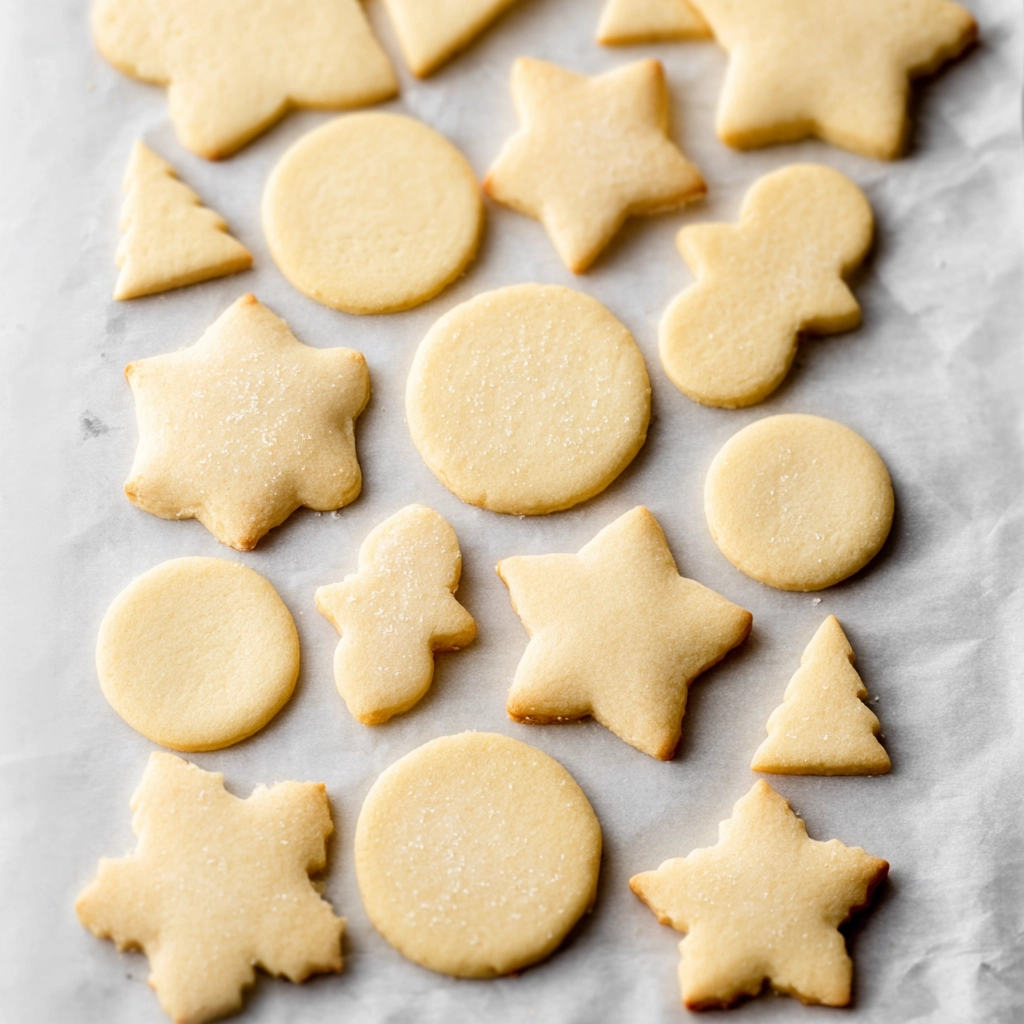 Always flour your surface, rolling pin, and cookie cutters. It might sound simple, but it makes a world of difference. Roll to exactly ¼ inch thickness — this gives the cookies their signature balance between soft and crisp. When cutting shapes, dip the cutter in flour before each press to keep the dough from sticking. If making detailed shapes, freeze your tray for 15–20 minutes before baking; it helps preserve clean edges. Once baked, let the cookies cool completely on a wire rack before decorating or storing.