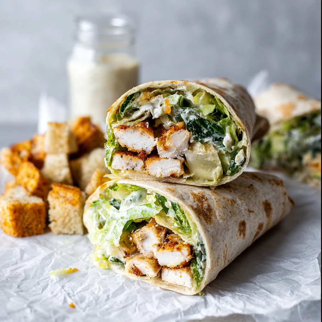 Grilled chicken adds a light smoky note that pairs well with Caesar dressing. Freshly grated Parmesan melts slightly into the mixture and tastes richer than pre-shredded cheese. Adding croutons just before rolling keeps them crisp.