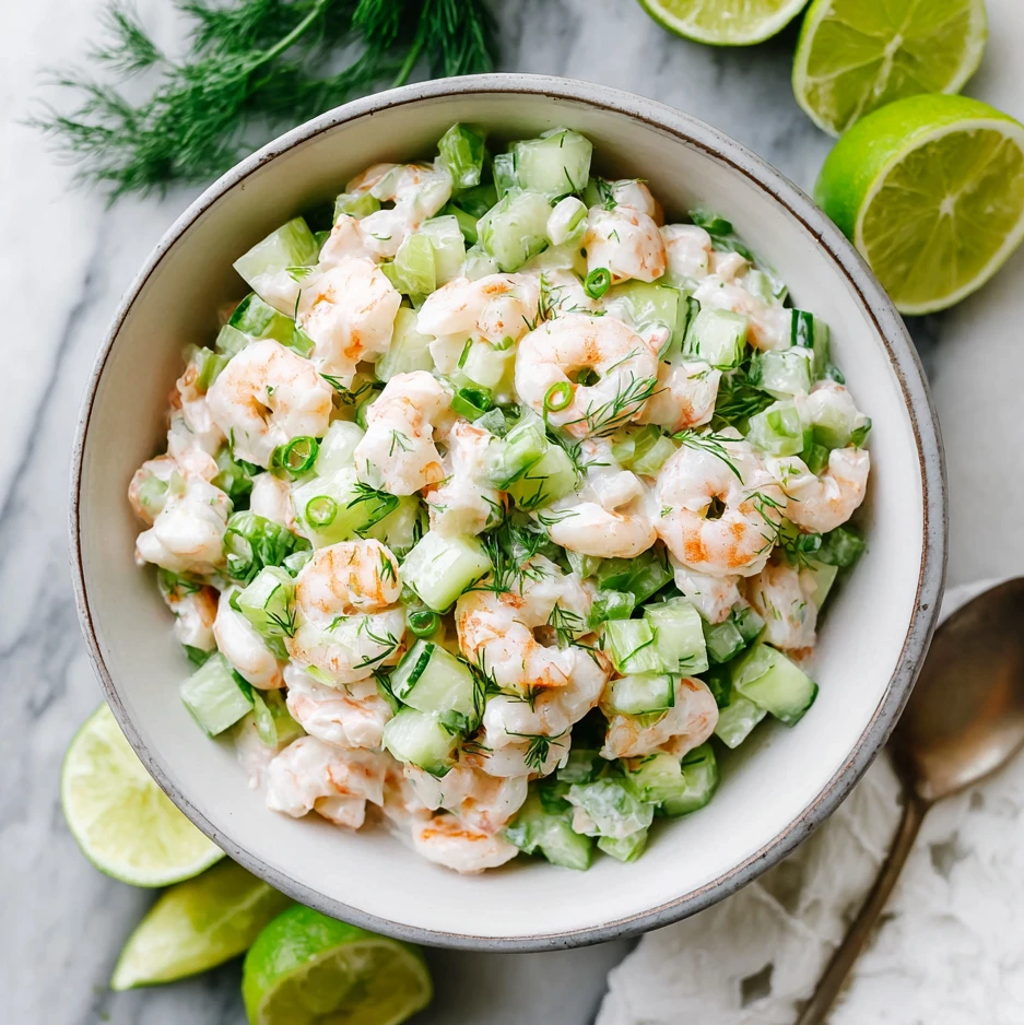 This cucumber shrimp salad combines tender shrimp, crisp cucumber, fresh dill, and a creamy lime dressing for a light and refreshing seafood dish.