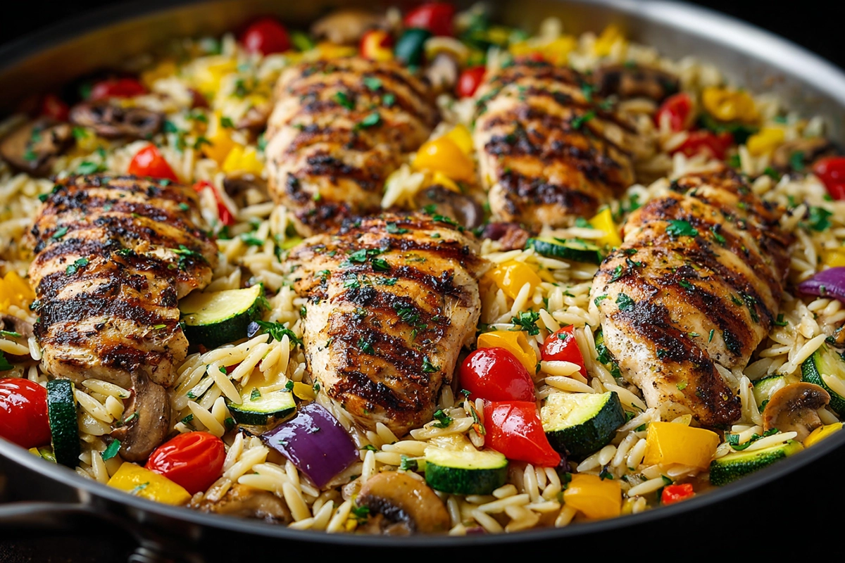 Wholesome & hearty: Chicken, orzo, and colorful veggies create a complete, balanced meal.