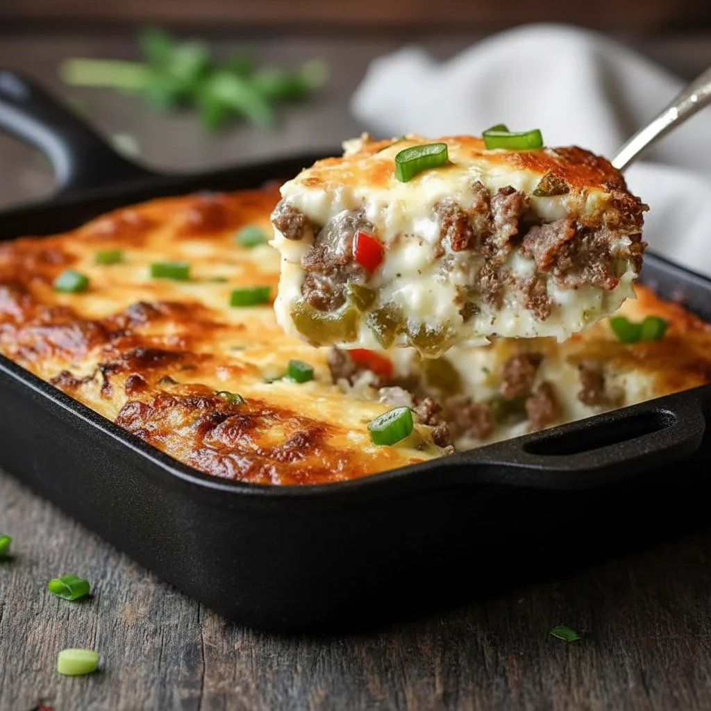 Philly Cheesesteak Casserole brings all the bold, savory flavor of the classic sandwich into a rich, oven-baked dish without the bread. This hearty, cheesy dinner delivers everything you crave—tender beef, sautéed peppers, sweet onions, and layers of melted cheese—while keeping it perfectly low carb. If you’re looking for a satisfying Keto dinner that fits your carb-conscious lifestyle, this recipe checks every box. It’s simple, filling, and incredibly flavorful, making it ideal for busy weeknights or weekly meal prep.