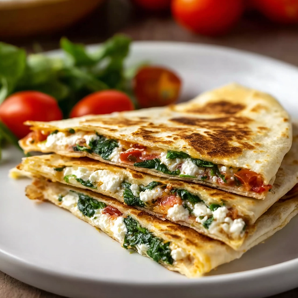 Spinach and Feta Quesadillas are a quick, healthy Mediterranean meal packed with fresh spinach, creamy feta, and crisp tortillas.