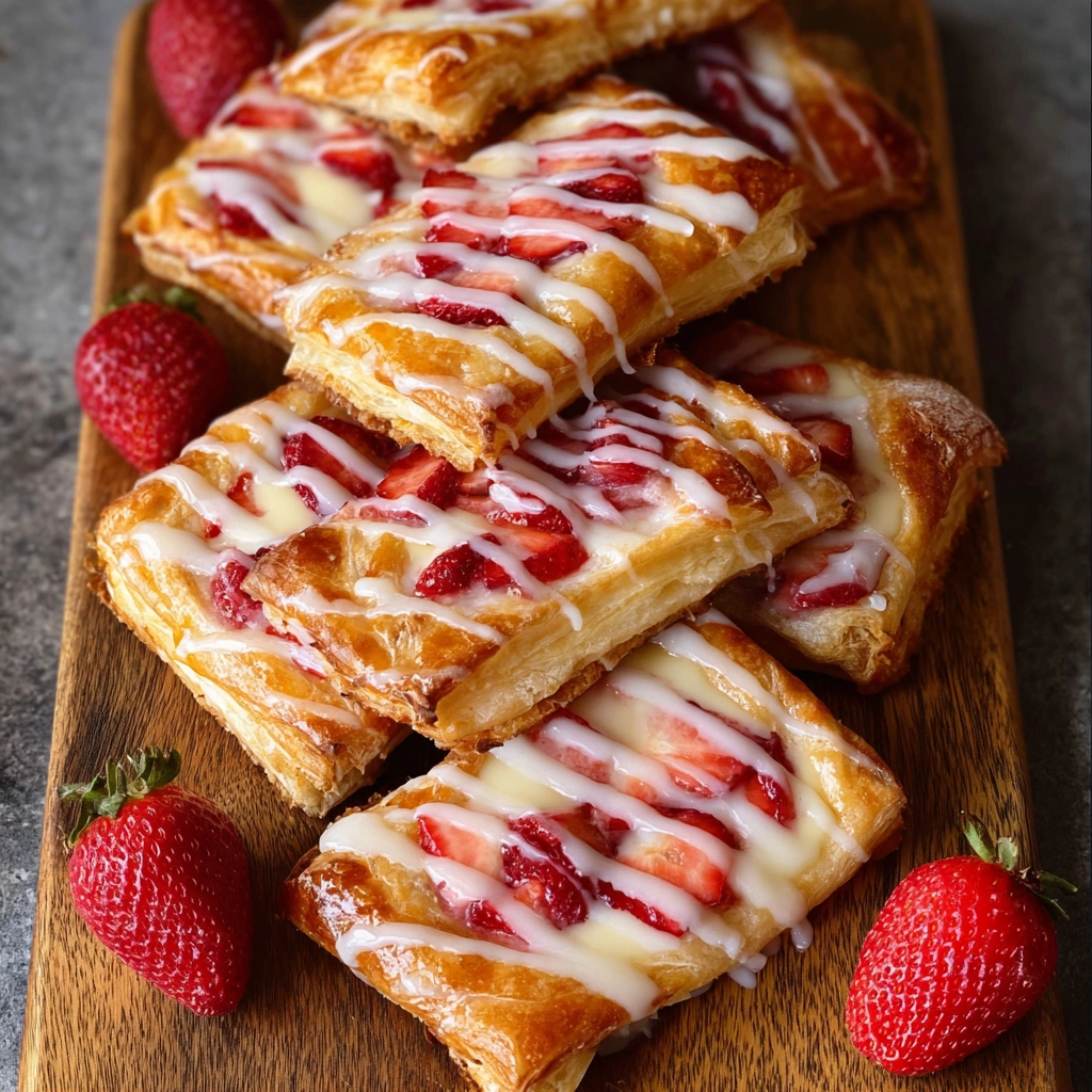 Serve Strawberry Danish slightly warm or at room temperature with a spoonful of warmed strawberry jam or a light vanilla glaze drizzled over the top. These pastries pair well with coffee or tea and work beautifully as a breakfast treat or brunch addition.