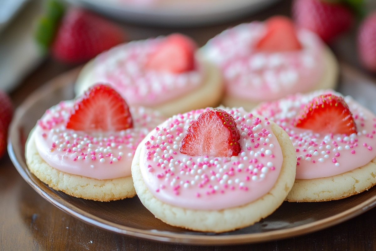 - If using a glaze, whisk together powdered sugar, strawberry puree, and vanilla extract until smooth. Drizzle over the cooled cookies.